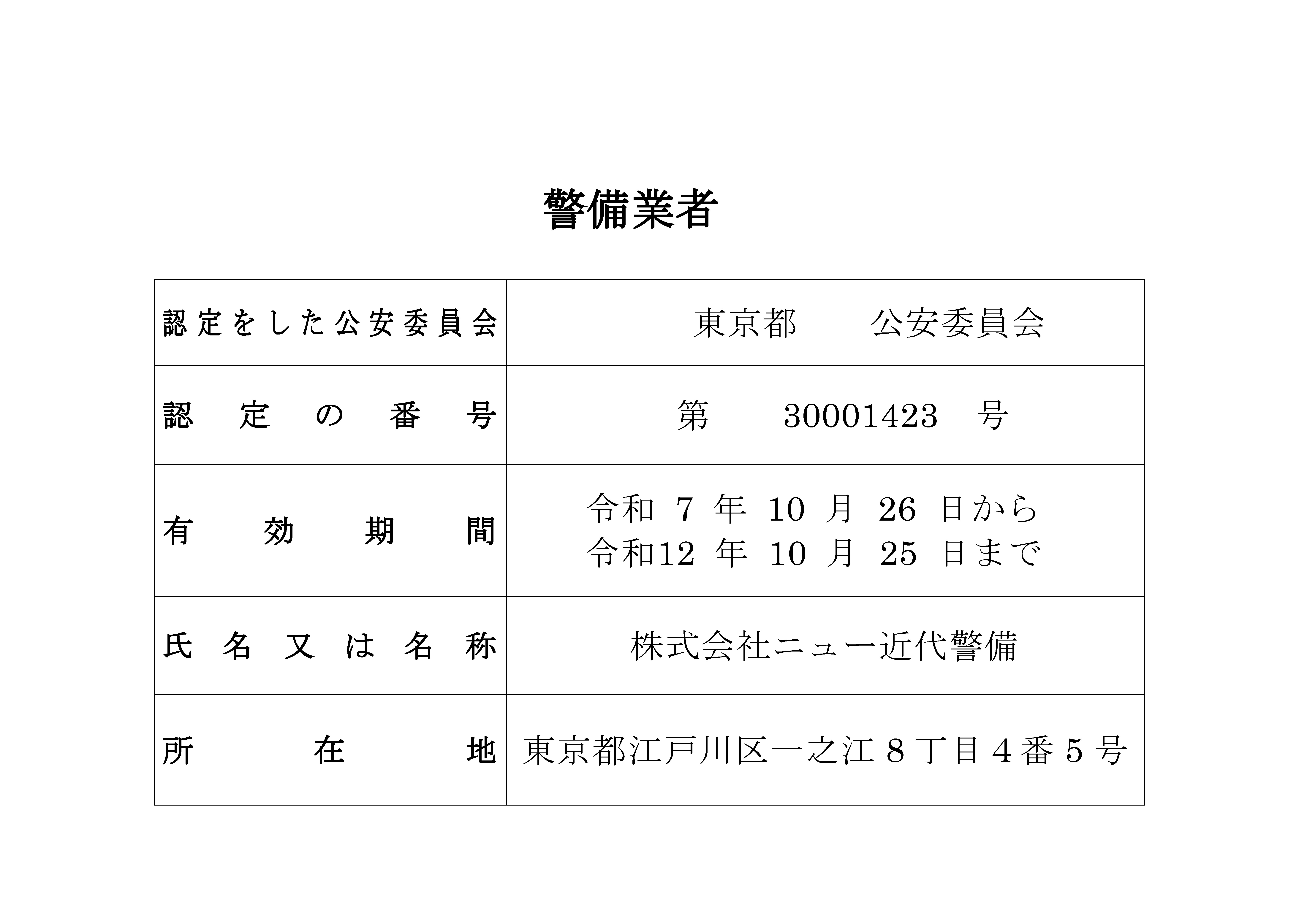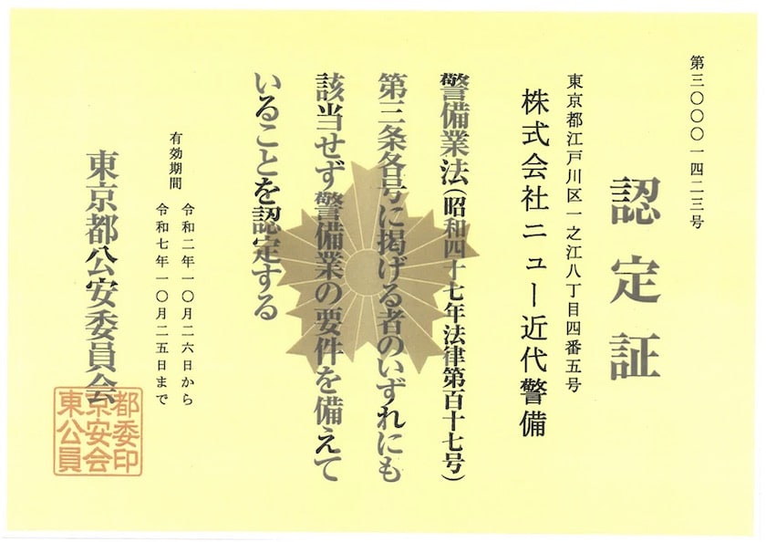 | 認定 | 東京都公安委員会 認定第30001423号 |